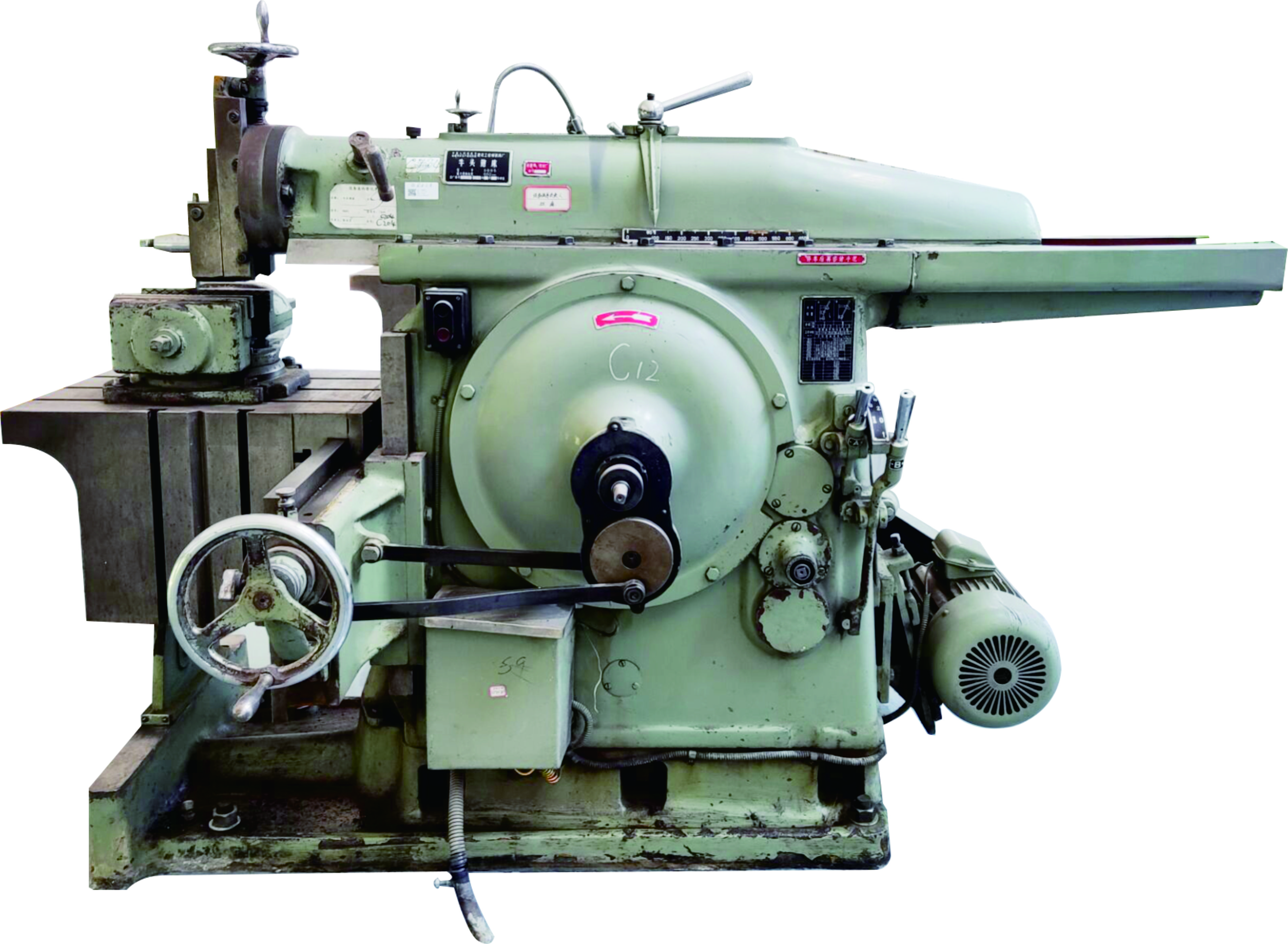 3)刀架——刀架装在滑枕上,刀架上有刻度环,下有转盘、刀座、溜板、抬刀板和刀夹等组成,转盘可板一定角度,用来刨削斜面,刀座可在溜板上左右倾斜加工垂直面,溜板可在转盘导轨上下移动来调节吃到深度,抬刀板可沿刀座的轴上抬起,以减少回程时刀具与工件的摩擦。